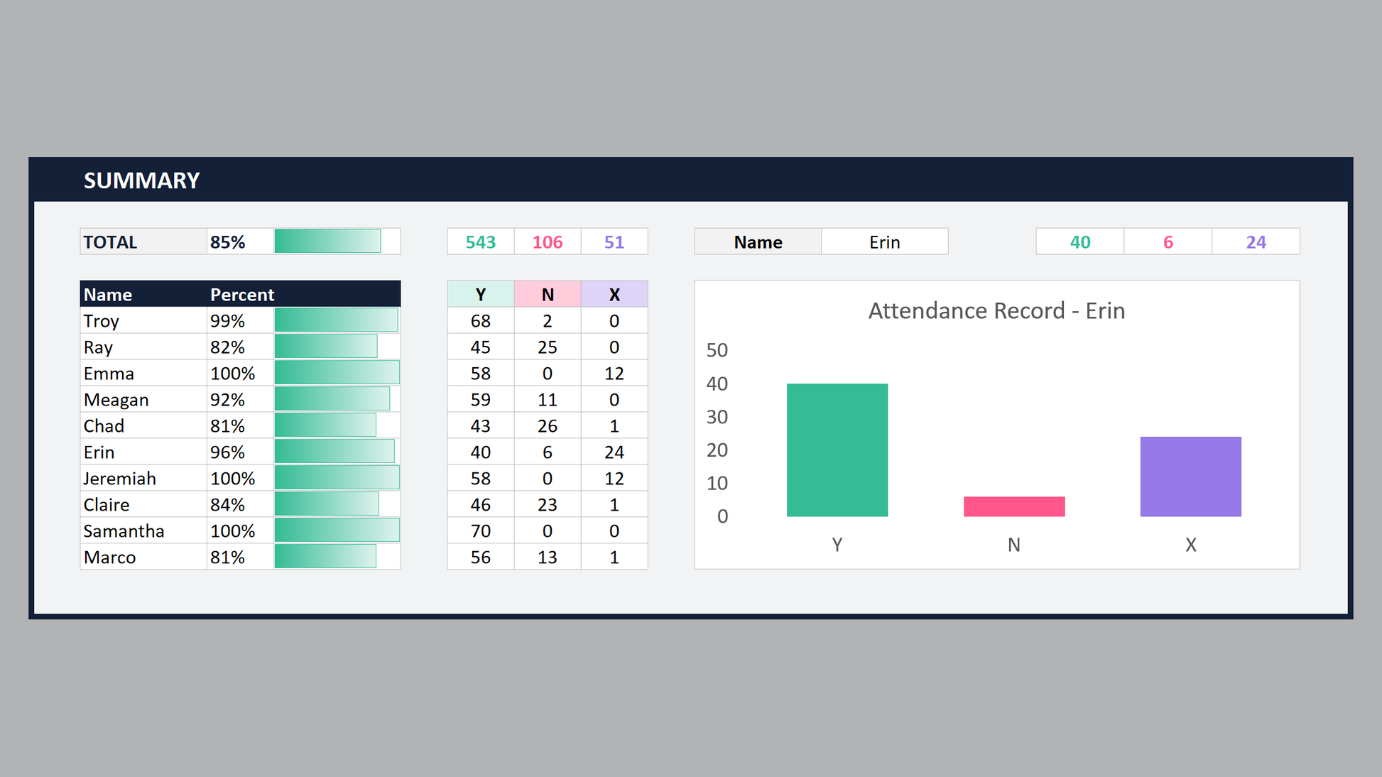 - Excel Attendance Tracker