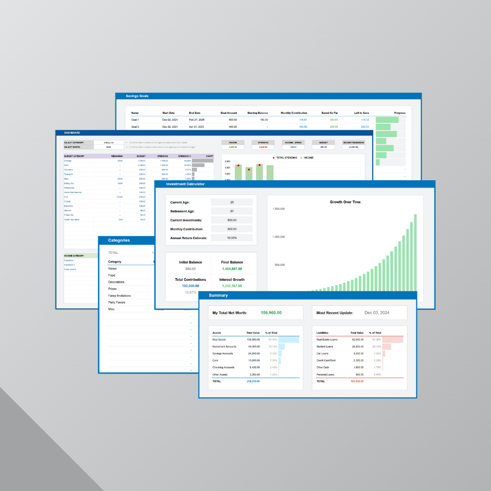 Save over 50% and get all eight Google Sheets personal finance templates in one package.