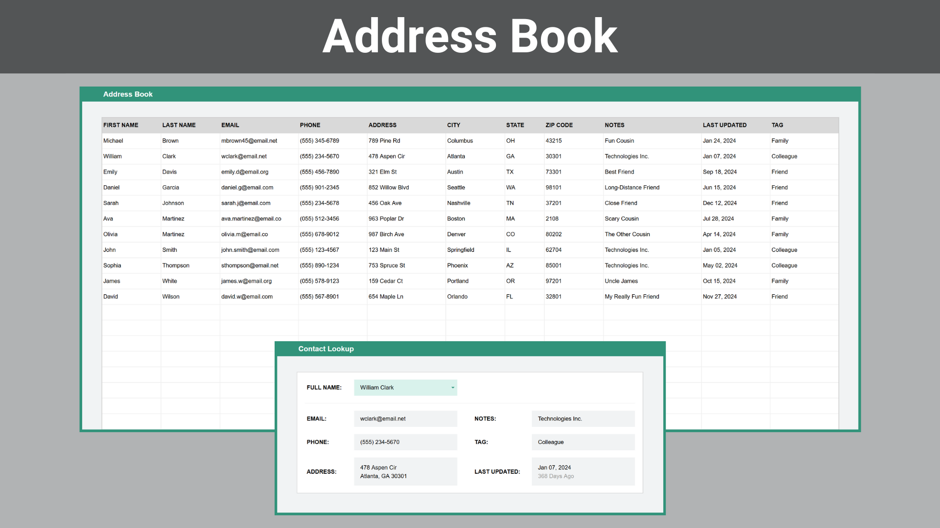 5) Address Book - Keep client and vendor contact details organized.